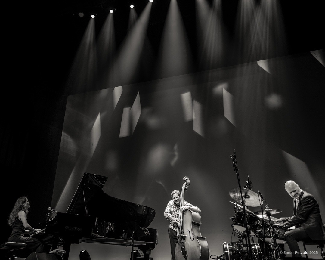 "An afternoon solo piano set on Saturday from rapidly rising German star pianist Clara Haberkamp was attended by well over 1000 people. She has a daunting musical brain, capable of playing multi-dimensional games of counterpoint and voice-leading… but then, by stealth, Mehldau-ishly perhaps, she can melt the heart with a ballad like her own tune “Mein Herz ist unterwegs”, played with limpid clarity and unmistakable emotional depth." (Sebastian Scotney)